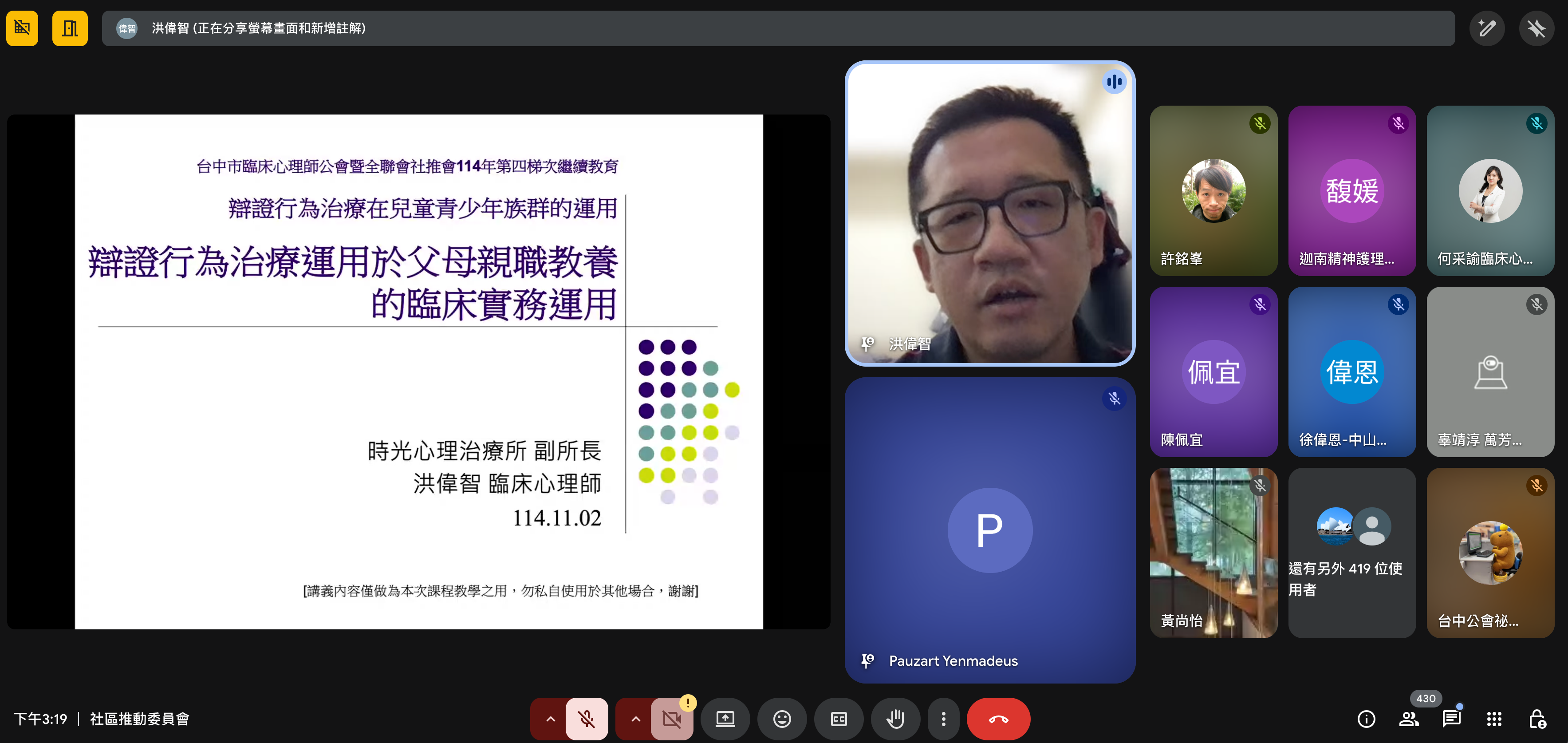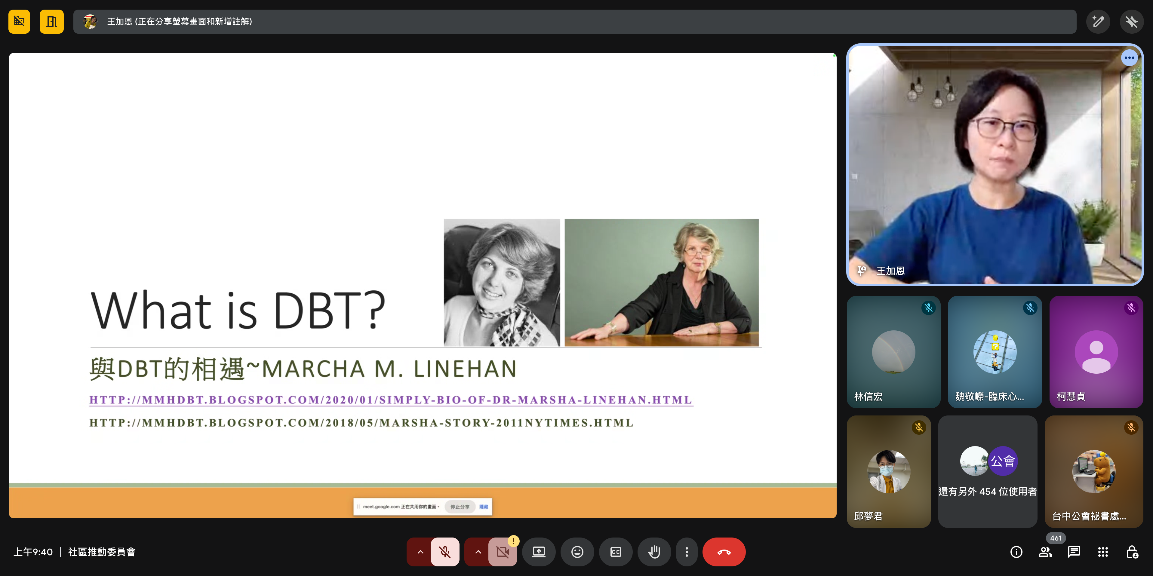 一、主辦單位:台中市臨床心理師公會、臨心全聯會社區發展推廣委員會 二、課程主題:從CBT到DBT 三、課程地點:課程地點:以 Google Meet 進行線上授課 四、課程時間:2025.11.02 (日) 09:00−16:00 五、講師:王加恩臨床心理師、洪偉智臨床心理師