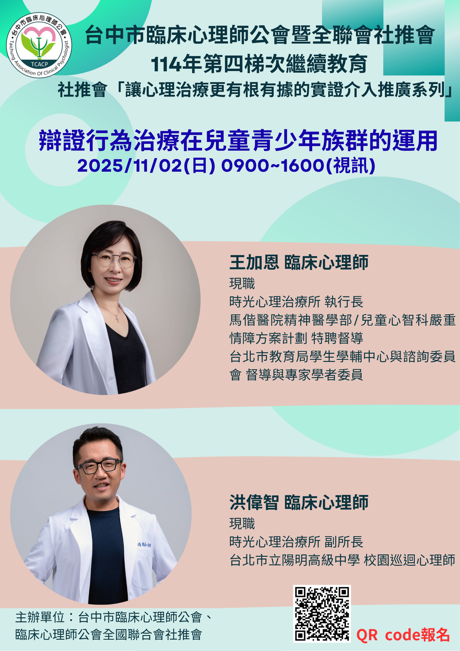 台中市臨床心理師公會114年度第四梯次繼續教育