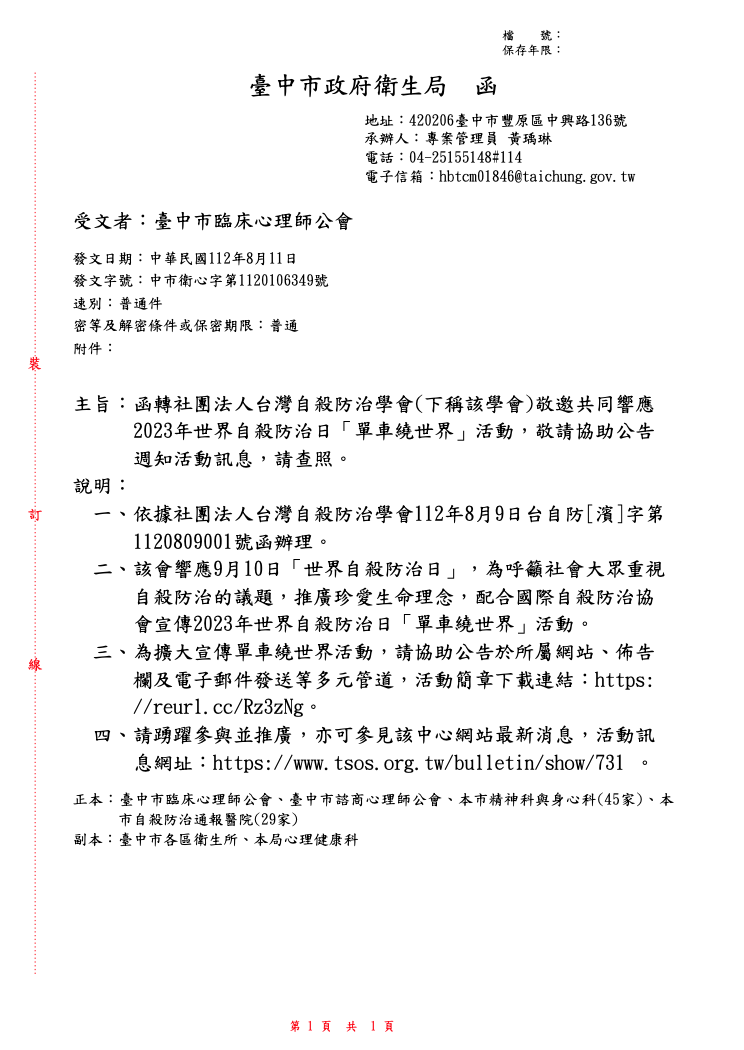 出入會聯繫:0963528181、其他事務聯繫:0921752201、Line ID: tcacpsy、傳真:(04) 3706-1095