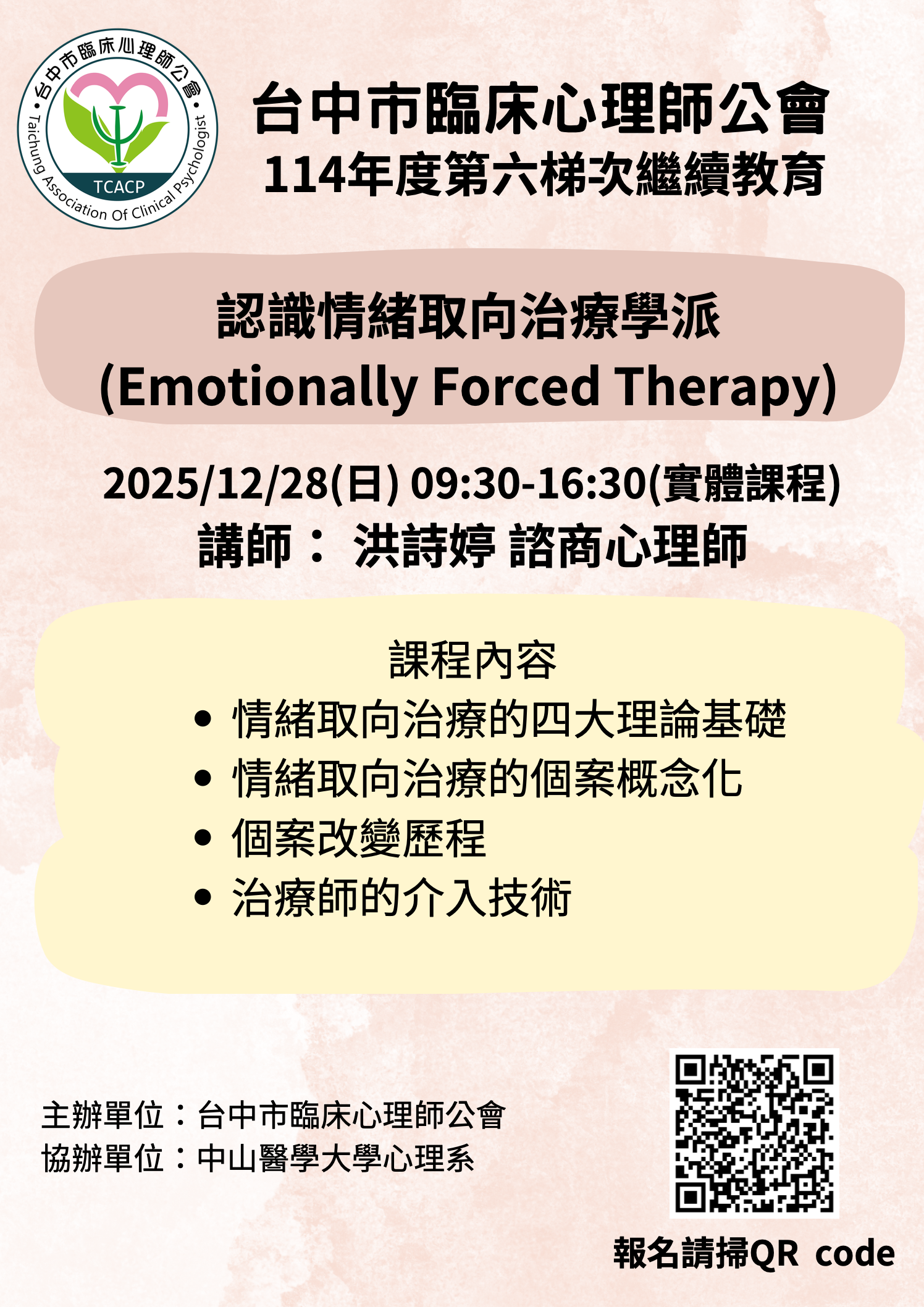 台中市臨床心理師公會114年度第六梯次繼續教育(實體課程)