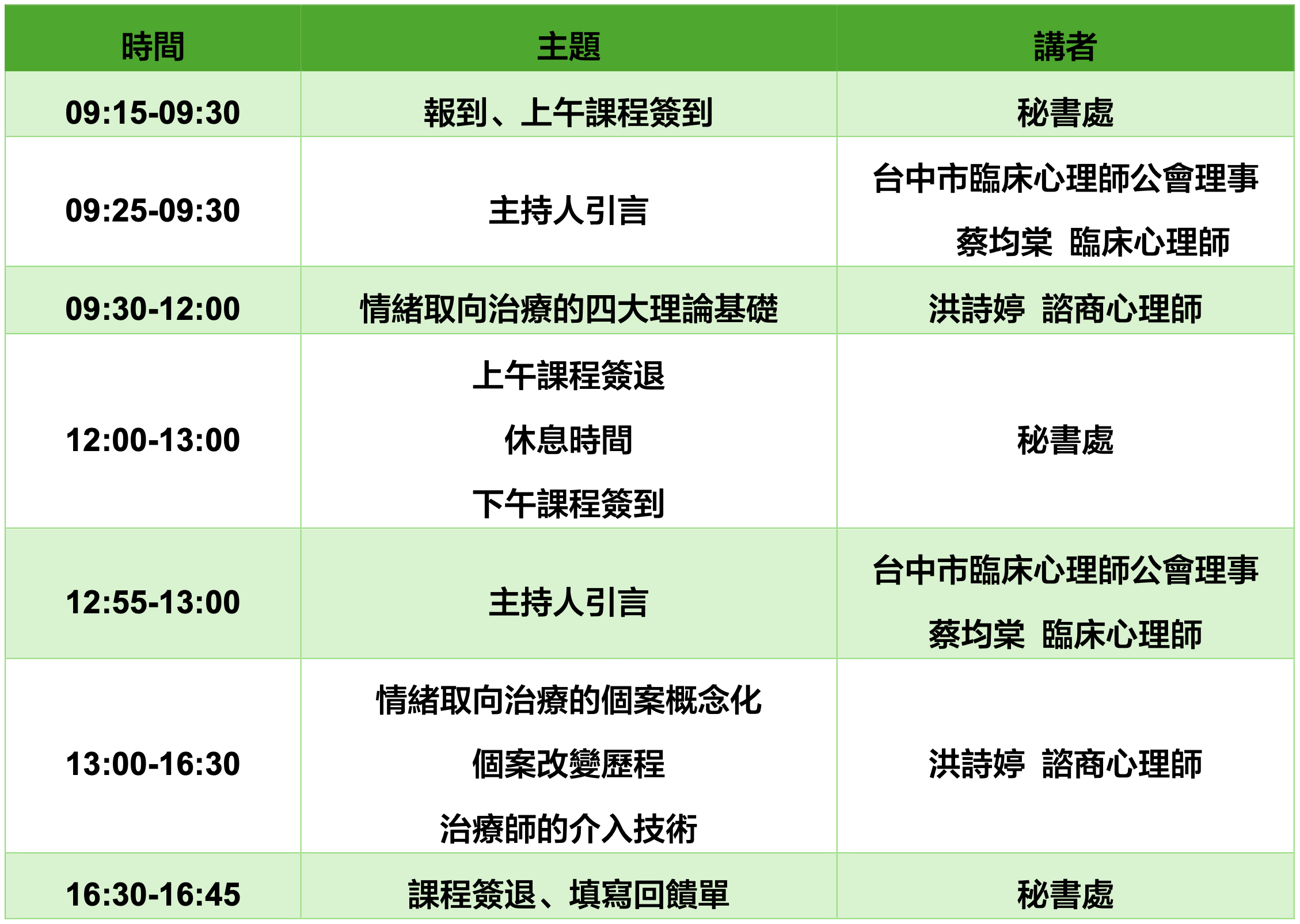 七、授課對象:僅開放給台中市臨床心理師公會會員參加