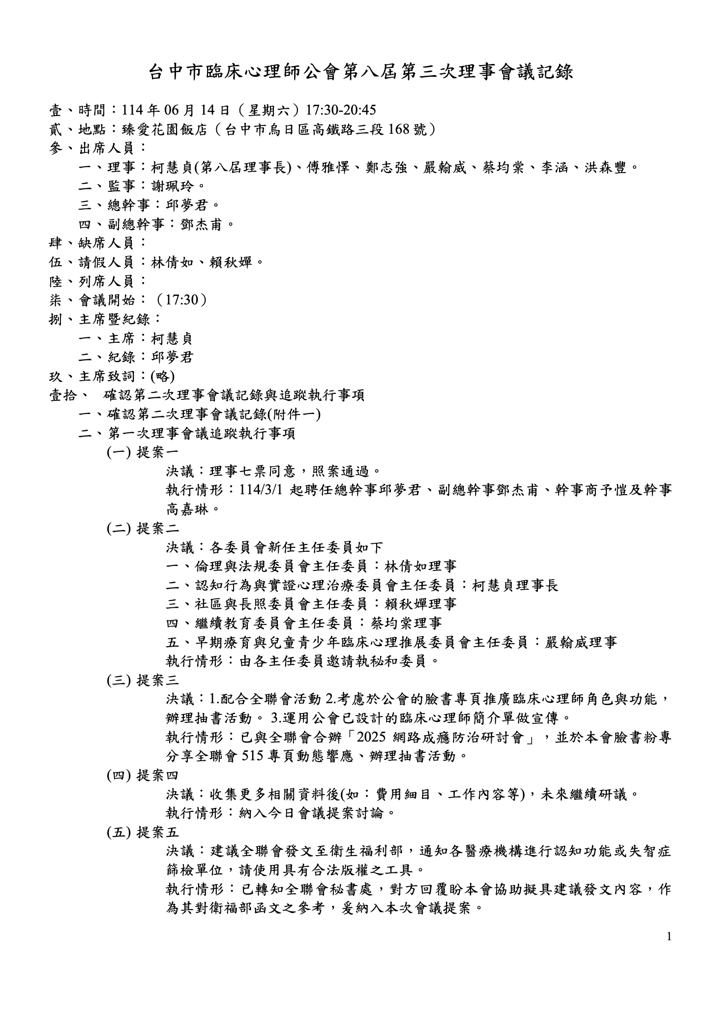第八屆第一次理事會議紀錄