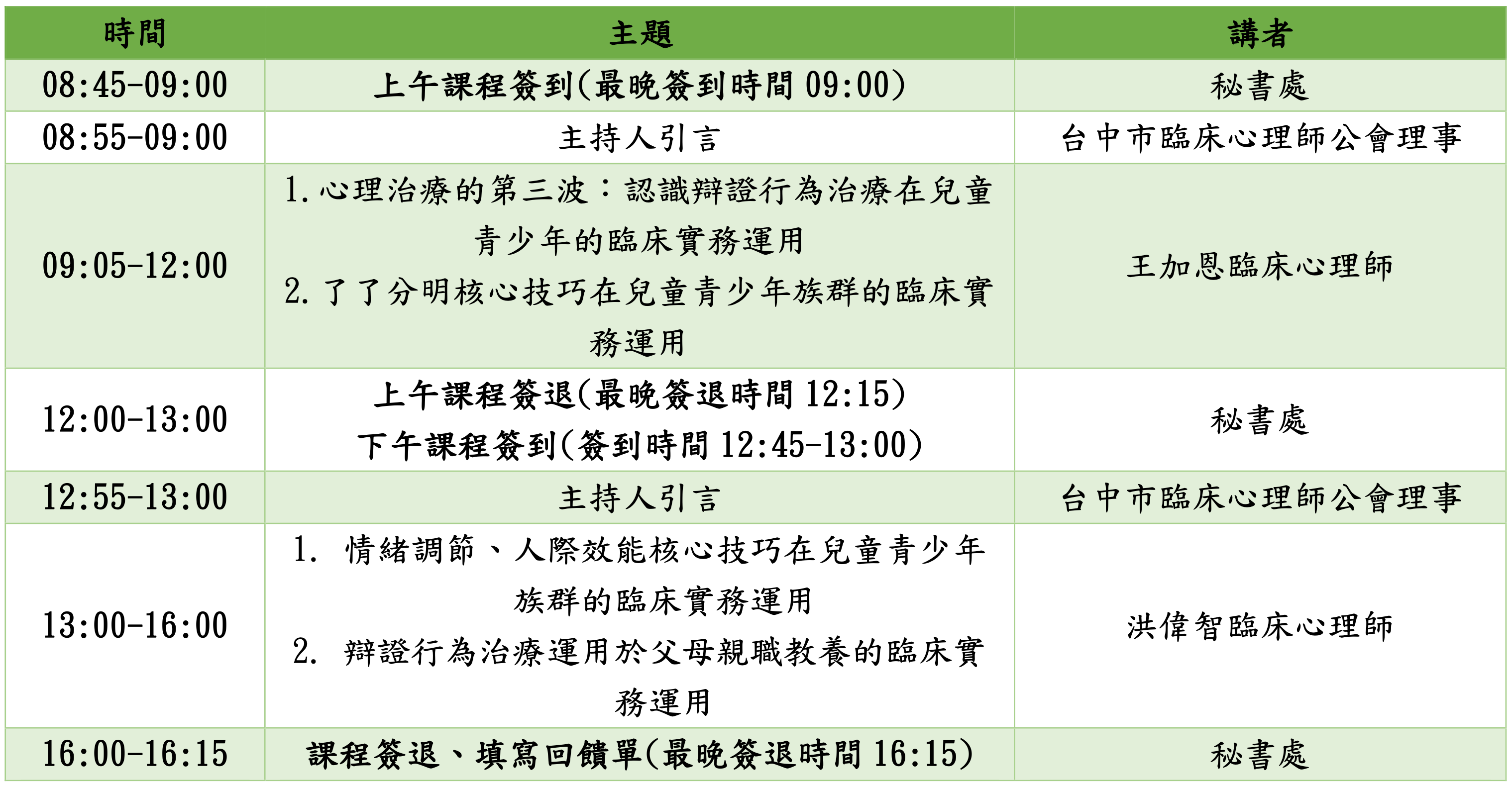 五、主辦單位:台中市臨床心理師公會、臨心全聯會社區發展推廣委員會
