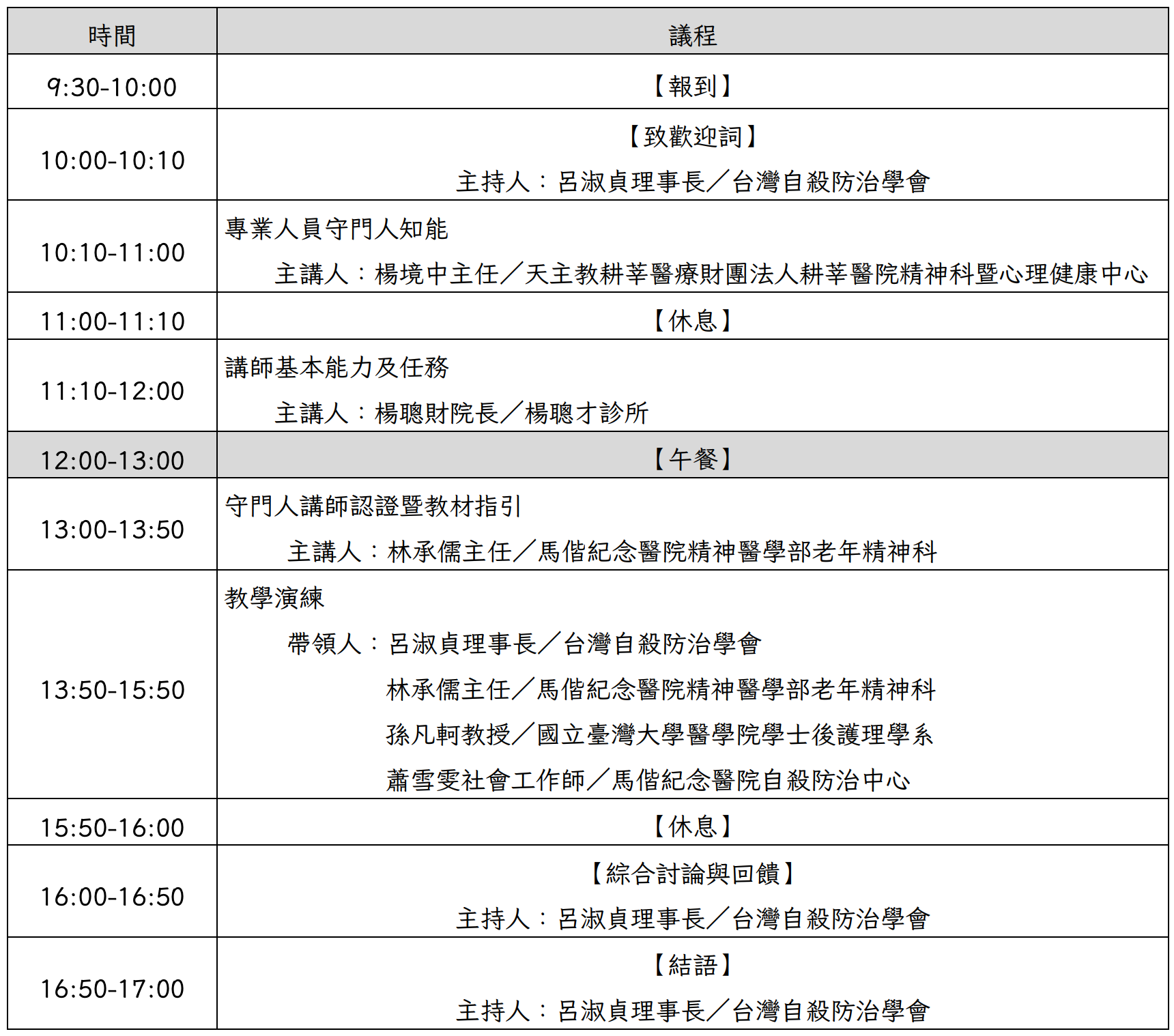 台灣自殺防治學會−「2025自殺防治守門人種子講師培訓」