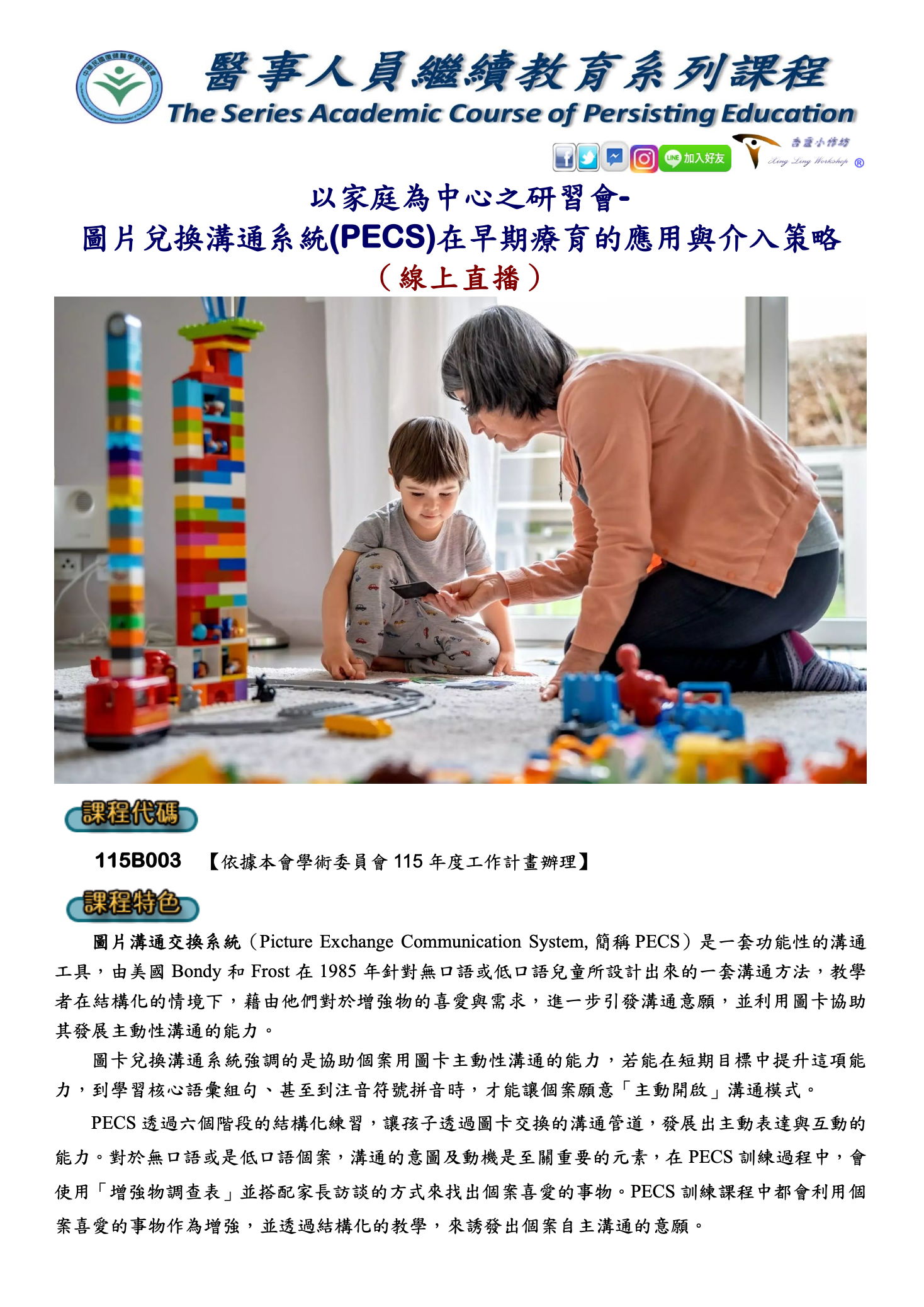 復健醫學發展協會:以家庭為中心之研習會-圖片兌換溝通系統(PECS)在早期療育