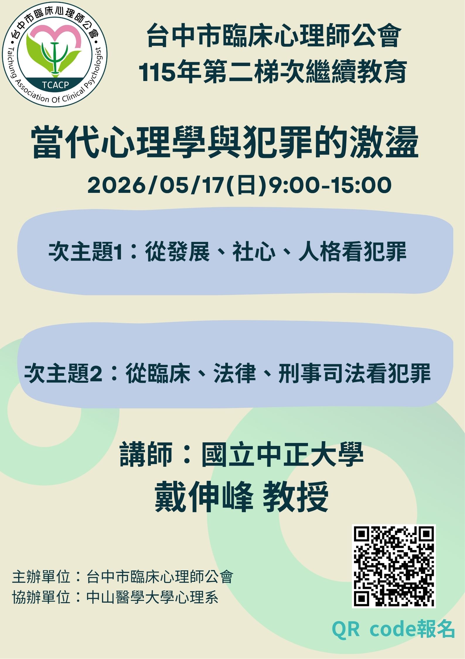 台中市臨床心理師公會115年度第2梯次繼續教育−GAD實證心理治療