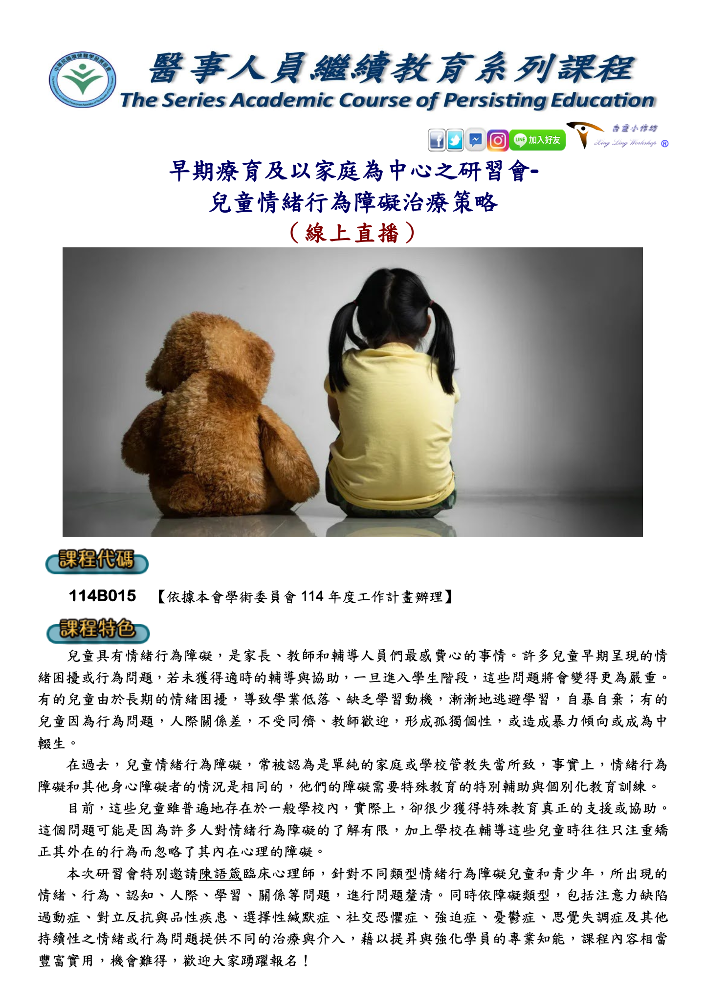 中華民國復健醫學發展協會−早期療育及以家庭為中心之研習會-兒童情緒行為
