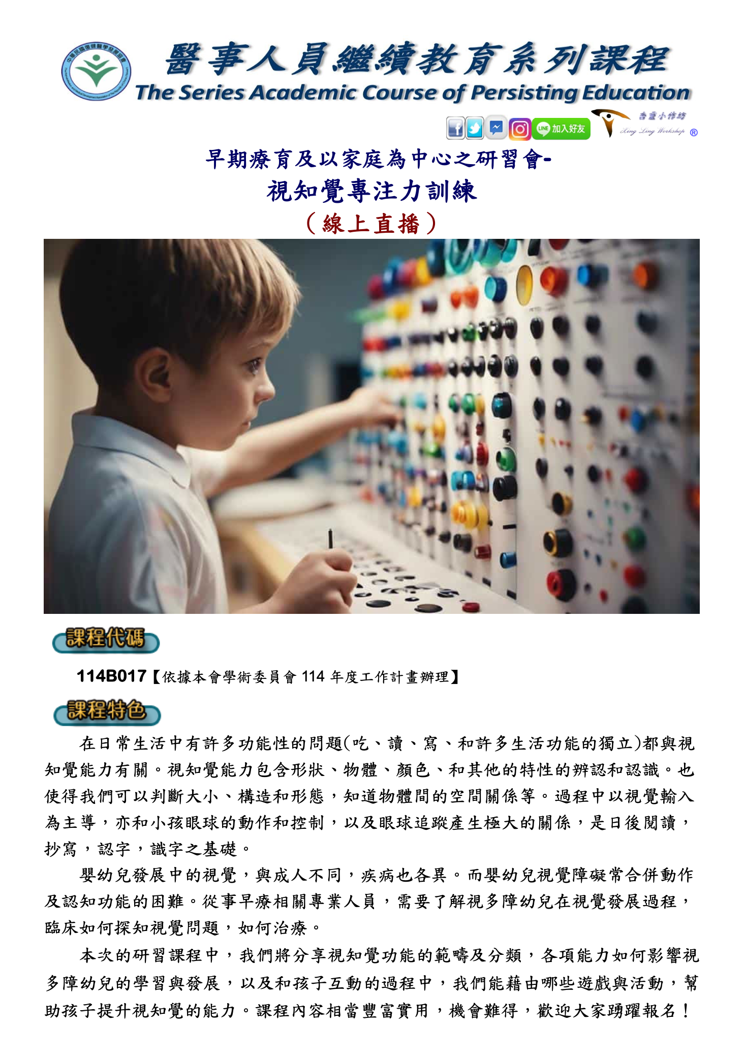 中華民國復健醫學發展協會−早期療育及以家庭為中心之研習會-視知覺專注力訓練