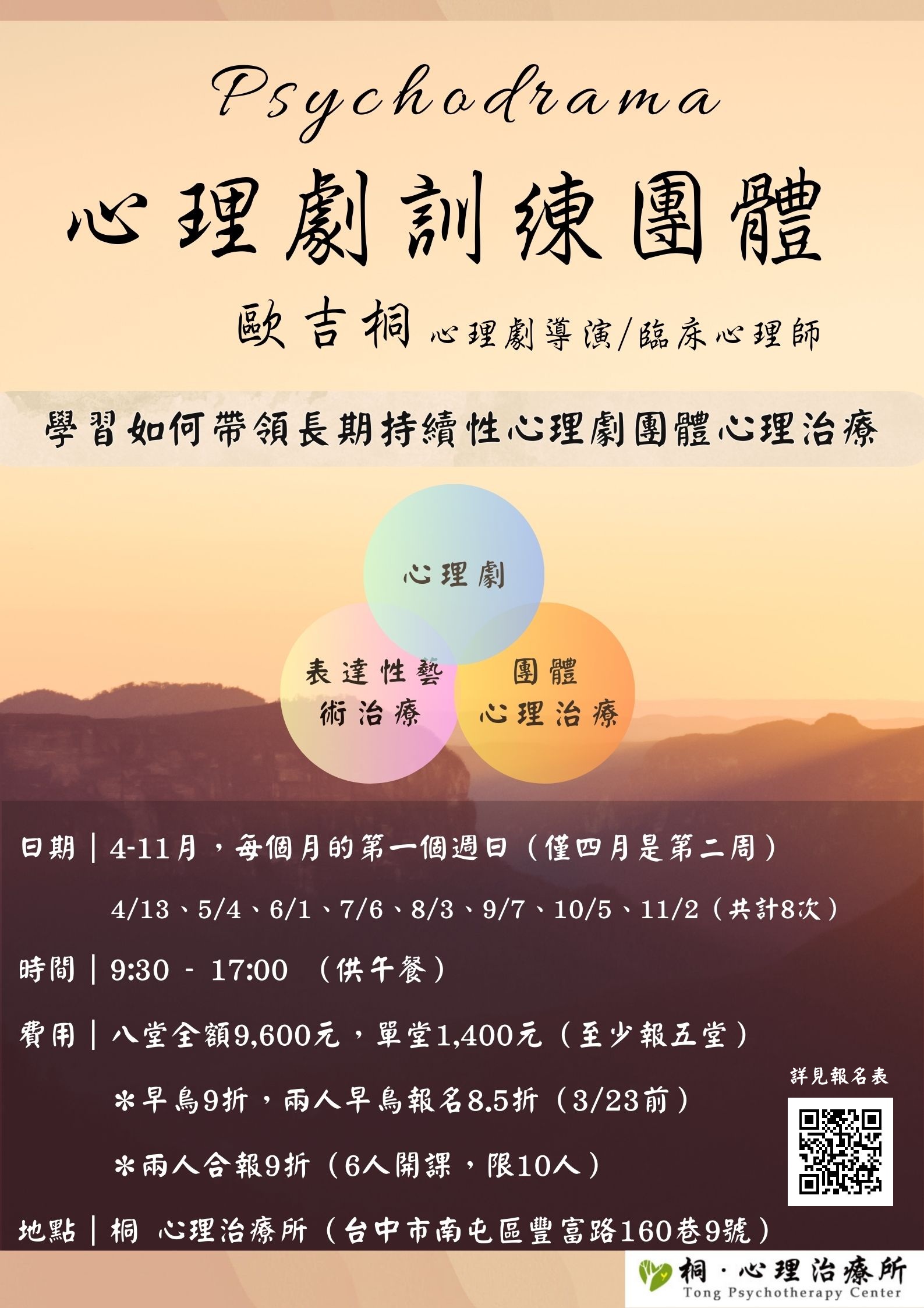 學習整合心理劇、團體心理治療與其他表達性治療(藝術、音樂、